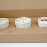 Discover your new favorite candle or find the perfect gift for loved ones with our curated trio set. Unveil the frosted collection, featuring spicy, citrusy, earthy, sweet and fruity notes.