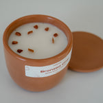 Wrap yourself in the warm embrace of fall with our Bronzed Chai candle. As it burns, the rich aromas of creamy vanilla and brown sugar blend with comforting spices like cardamom, ginger, and cinnamon, creating the perfect atmosphere for crisp, chilly evenings. Whether you’re curling up with a book or savoring quiet moments of self-care, Bronzed Chai surrounds you in a cocoon of warmth and serenity, making it your ultimate fall companion.