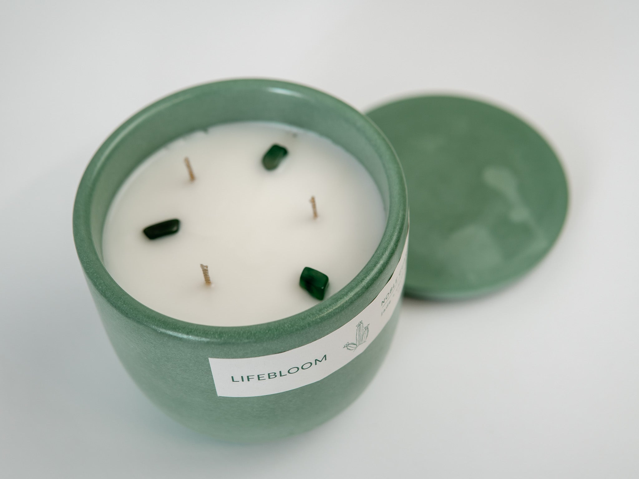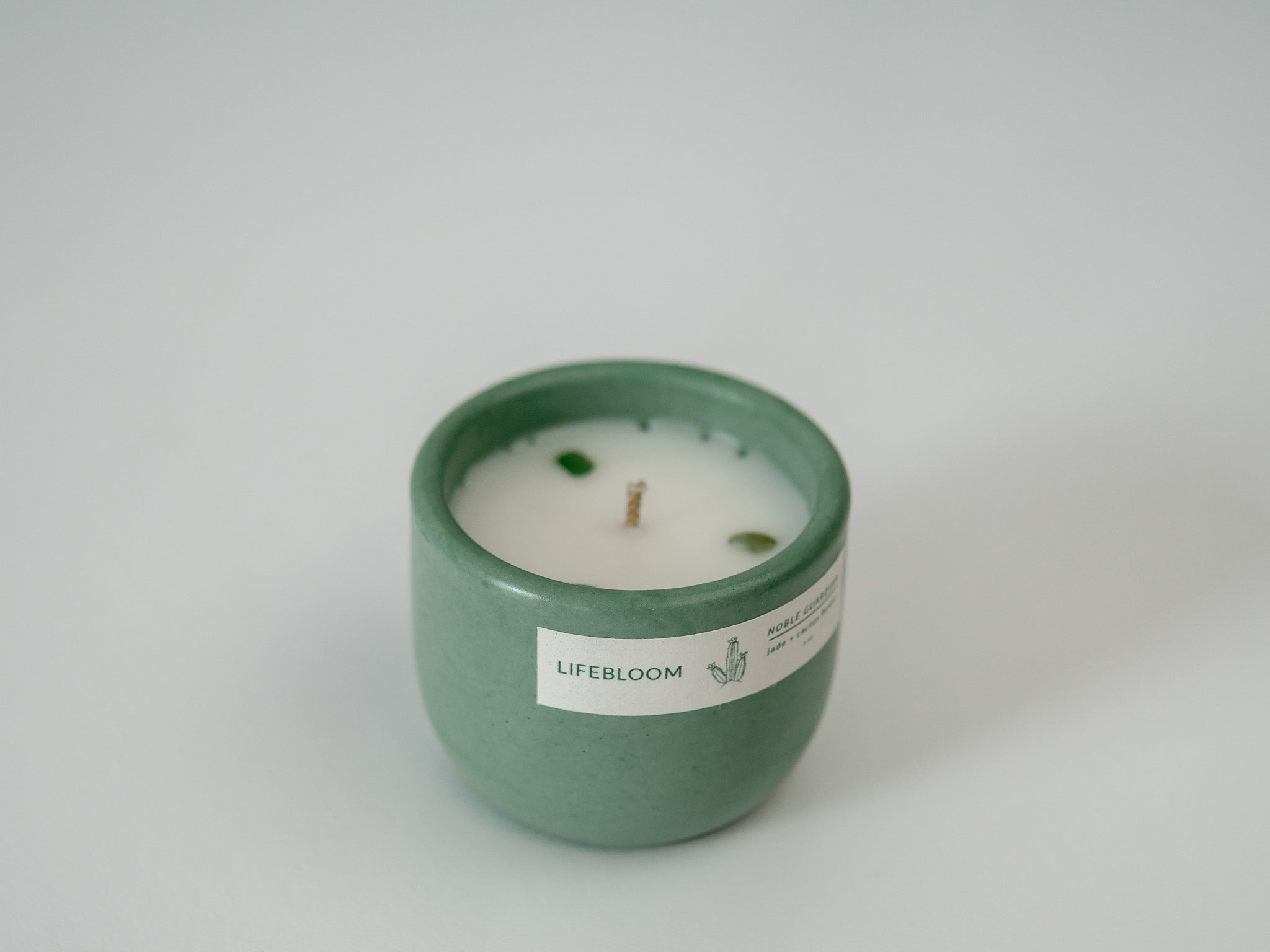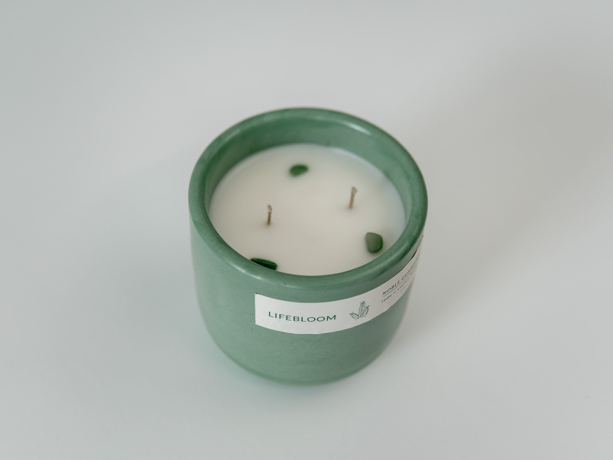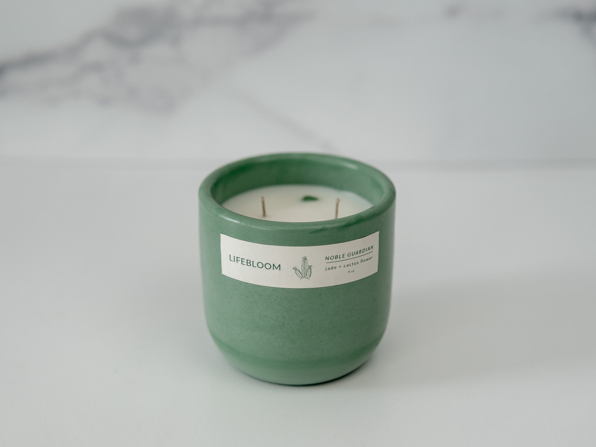 Awaken your senses with the fresh and floral fragrances of Noble Guardian. The serenity of jade and the unconditional love of cactus flower burst through protective, earthy layers, radiating brightness and warmth. Each scented candle is topped with genuine nephrite jade stones to enhance your experience of wisdom and tranquility. Choose Noble Guardian to shield you from harm while reminding you of your inner strength.